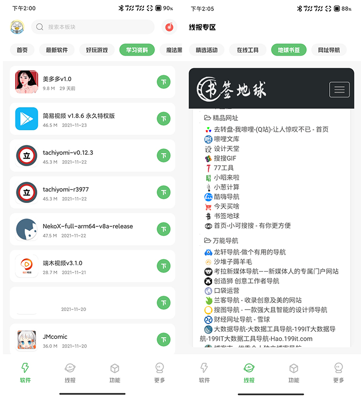 当然,LSP们最爱的学习资料肯定是少不了的,像tuozi、核桃云等等四哥都会把最新版分享到这里。还有还有,四哥平时也会搜集一些黑科技应用,下载页面也会简单写出使用方法,所以这个app大家一定要搜藏好哈~