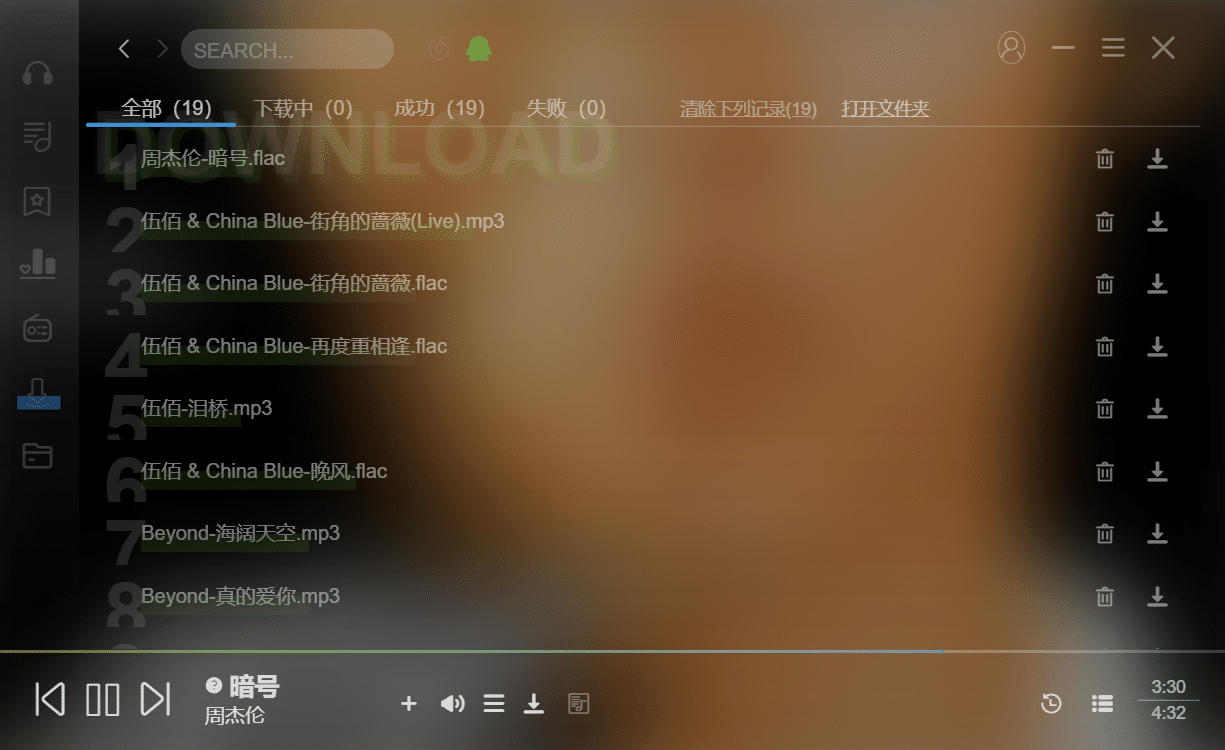 这款音乐播放器支持网抑云和扣扣音乐的搜索,同时也支持导入网抑云和扣扣音乐的歌单,以及音乐下载,而且还会把歌词文件同时下载下来,太人性化了。