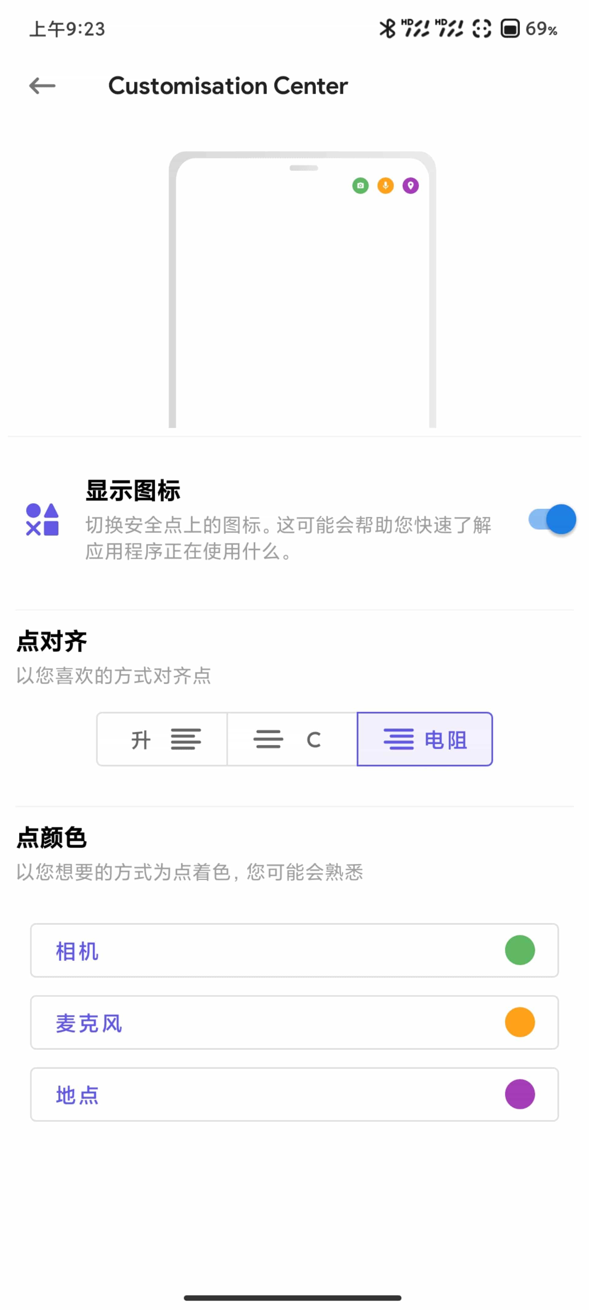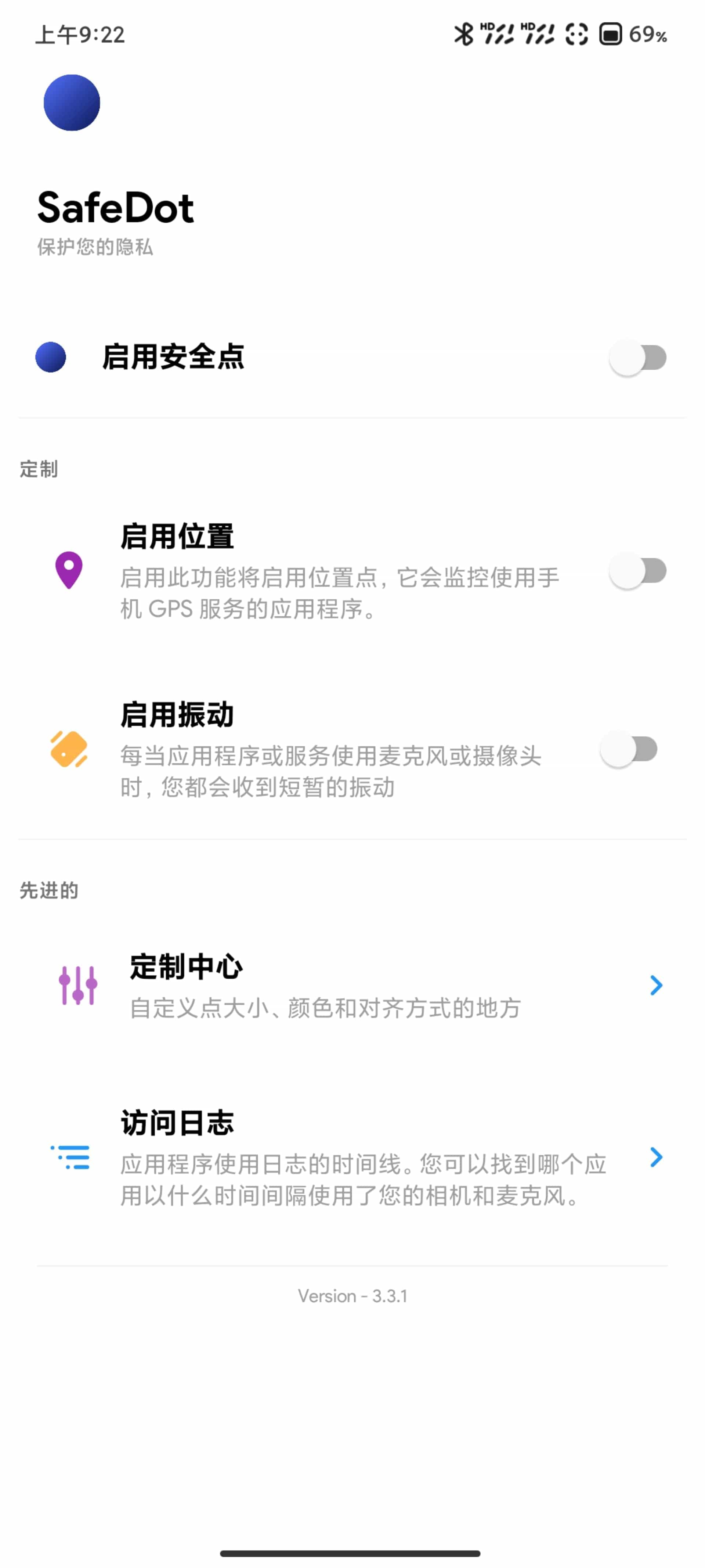 当系统应用或第三方应用使用你的设备摄像头或麦克风时,Safe Dot Pro为你提供指示。