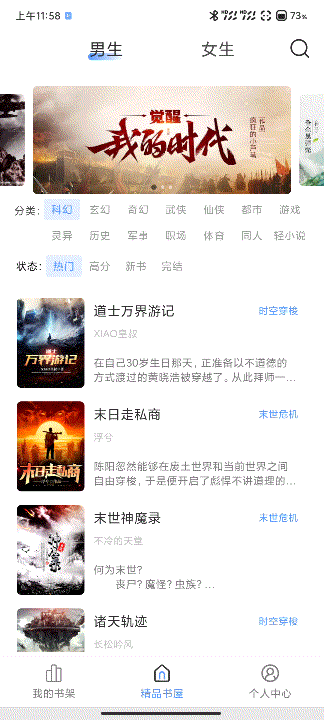 奇墨小说分为男频女频两个频道,它不仅拥有强大的搜索功能,还有精准的书籍爱好推荐机制!搜索速度也很快,一秒搜索出结果,非常nice!