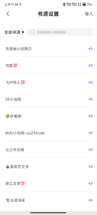 奇墨小说还提供了书源自定义管理功能,除了内置的500多书源,还可以自己手动导入外部书源,扩大书籍的搜索范围。