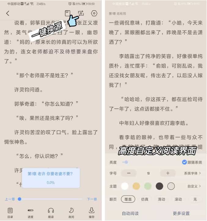 奇墨小说还可以线上换源,当书籍内容出错时 一键切换到新书源,3秒更正书籍内容。