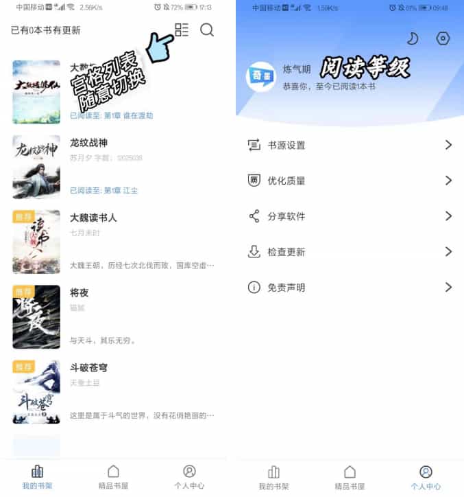 奇墨小说完全免费、无广告,并且内置优质书源,安装包大小也只有感人的10M大小,绝对是一款宝藏看书APP。