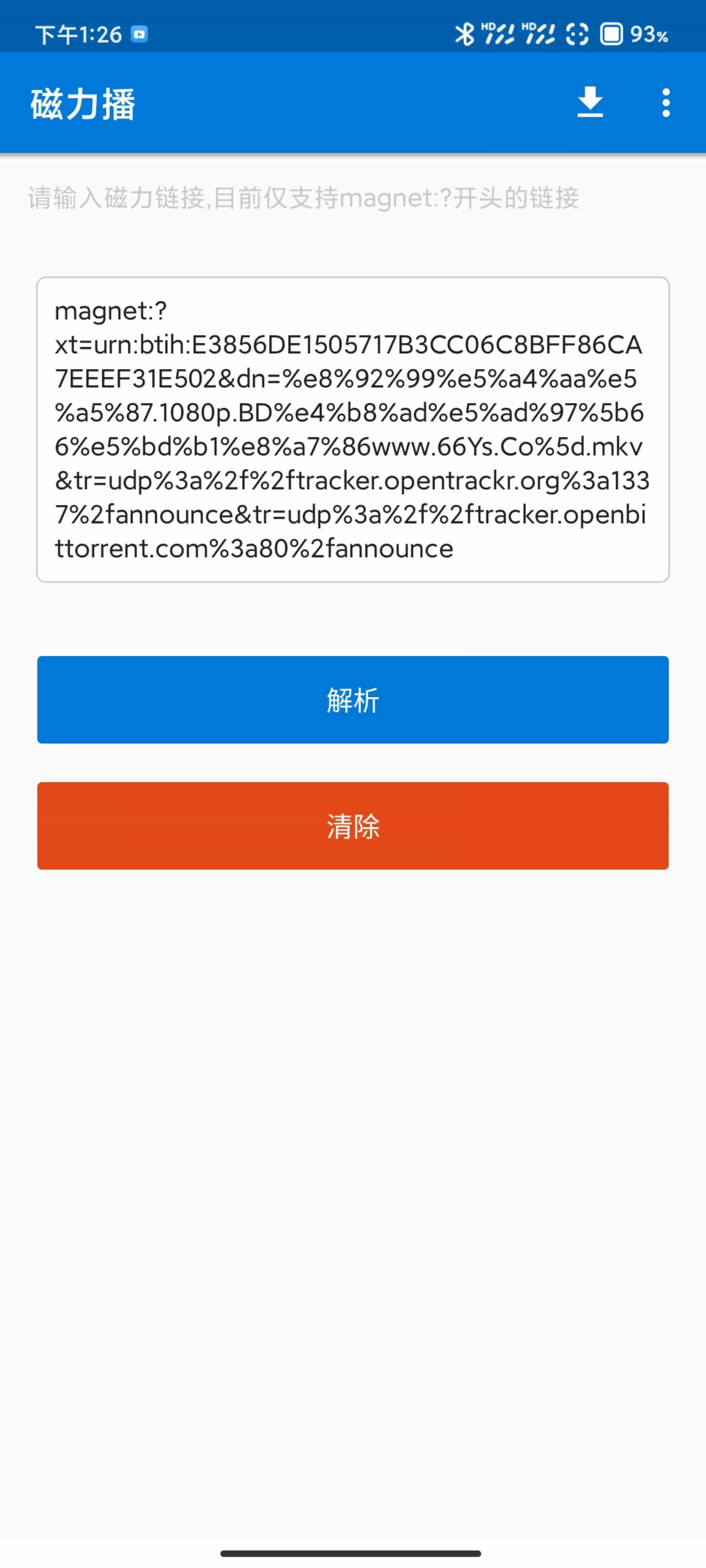 四哥又发现一款手机版的在线磁力播放器,界面非常简洁,并且已经做了去广告处理。在首页直接复制链接,就可以在线观看以及下载了。
