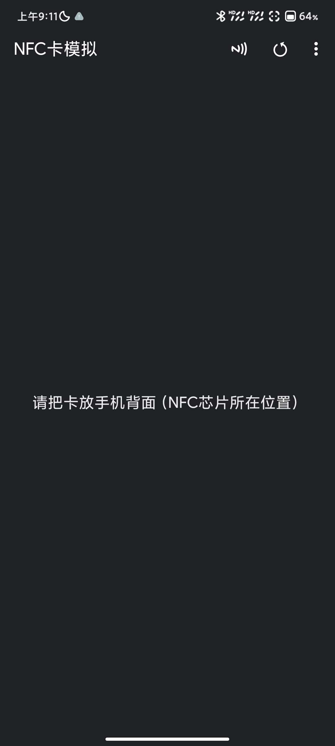 3. 将 NFC 卡放在手机背面。识别成功后,输入卡名并保存。