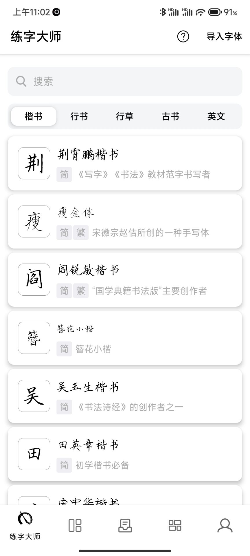 内置楷书、行书、草书历史名家字体