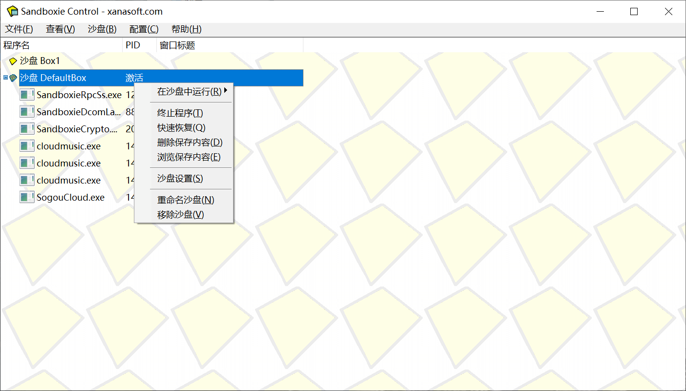 沙盘Sandboxie是一款国外著名的系统安全工具,允许你在沙盘环境中运行浏览器或其他程序,因此运行所产生的变化可以随后删除。可用来消除上网、运行程序的痕迹,也可用来还原收藏夹、主页、注册表等。即使在沙盘进程中下载的文件,也会随着沙盘的清空而删除。沙盘Sandboxie在系统托盘中运行,如果想启动一个沙盘进程,请通过托盘图标(而不要用原方式)启动浏览器或相应程序。