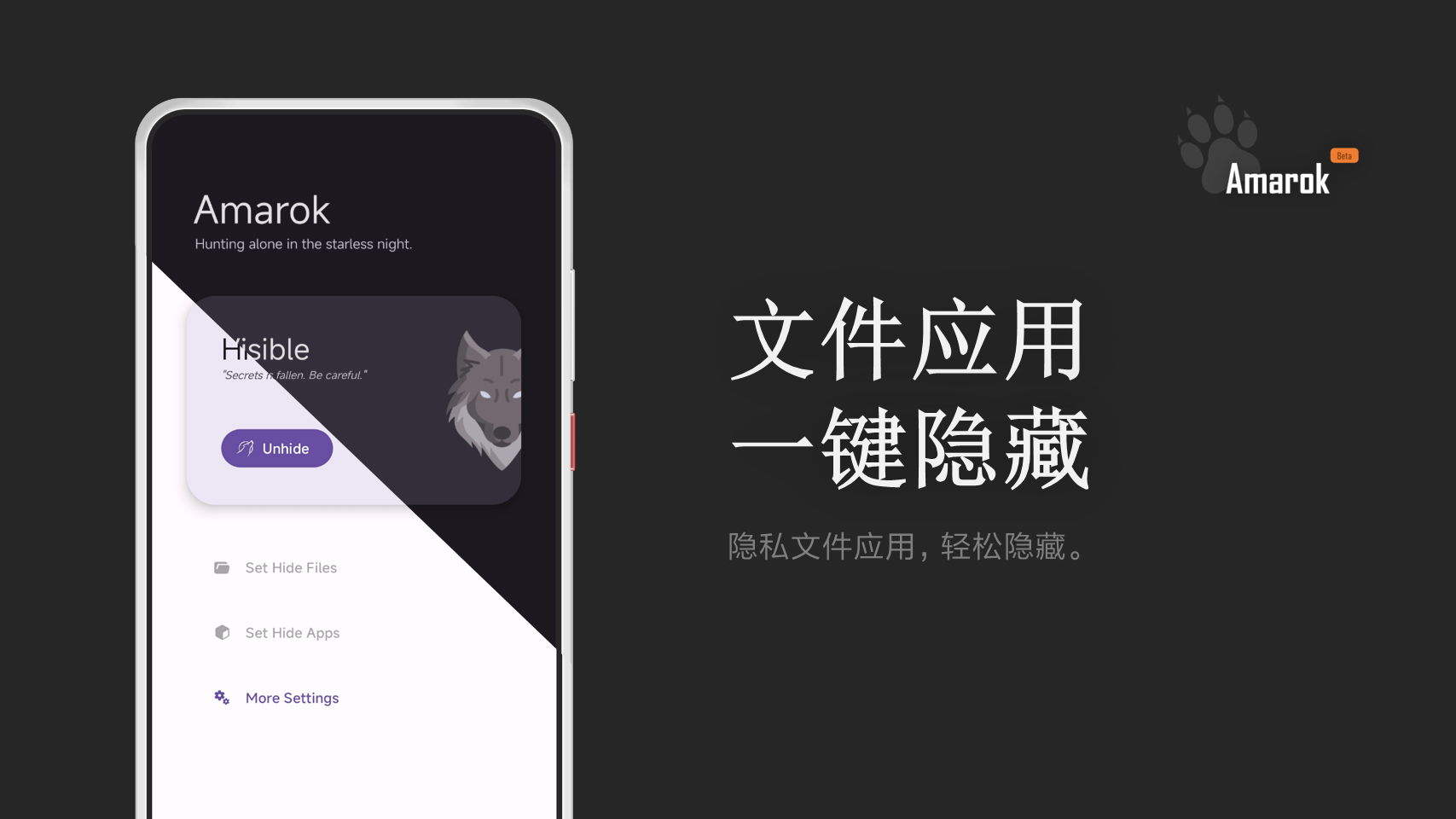 「Amarok」是个轻量级隐私保护小工具,一键隐藏你的隐私文件和应用。