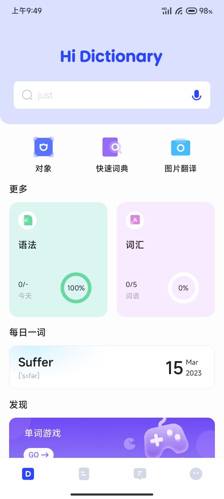 hi dictionary app是非常强大的手机与手机屏幕实时翻译软件,其中app所带的hidictionary悬浮球功能更是深得用户喜爱,大家可以利用这一功能快速翻译手机上不懂的外语内容,而且本款应用支持特别多种类的外语翻译哦。