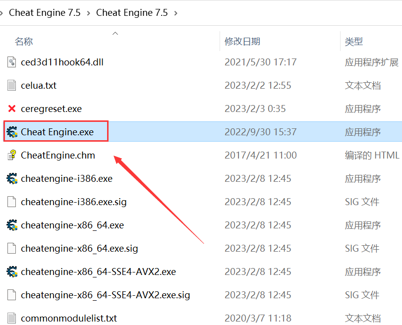 下载好Cheat Engine双击文件夹中的Cheat Engine.exe打开软件。