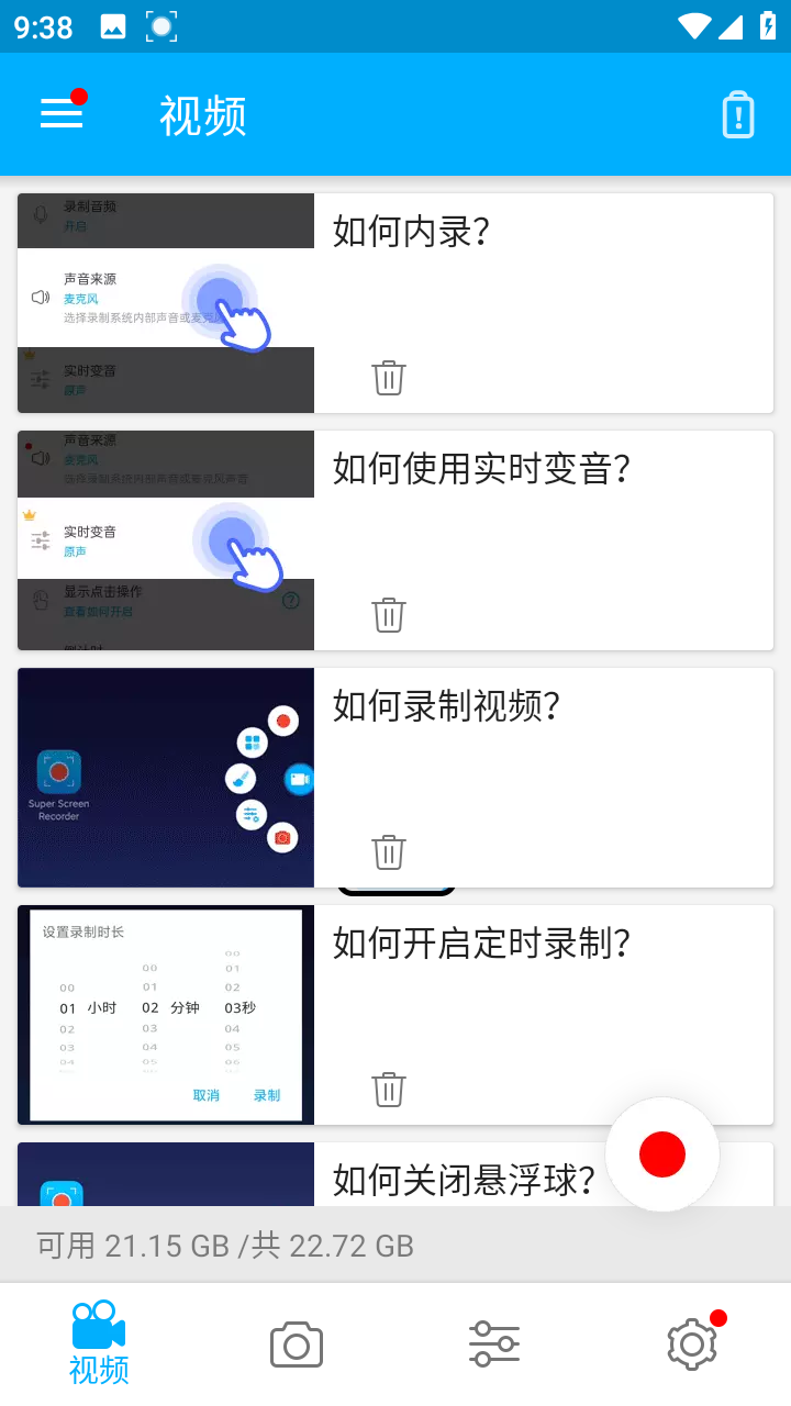 超级录屏是稳定、高效的高清免费录屏+直播+截图+视频编辑软件,功能强大、并且无需 Root,可以帮你轻松录制高清流畅的游戏视频、视频直播、视频聊天等各类手机屏幕视频!