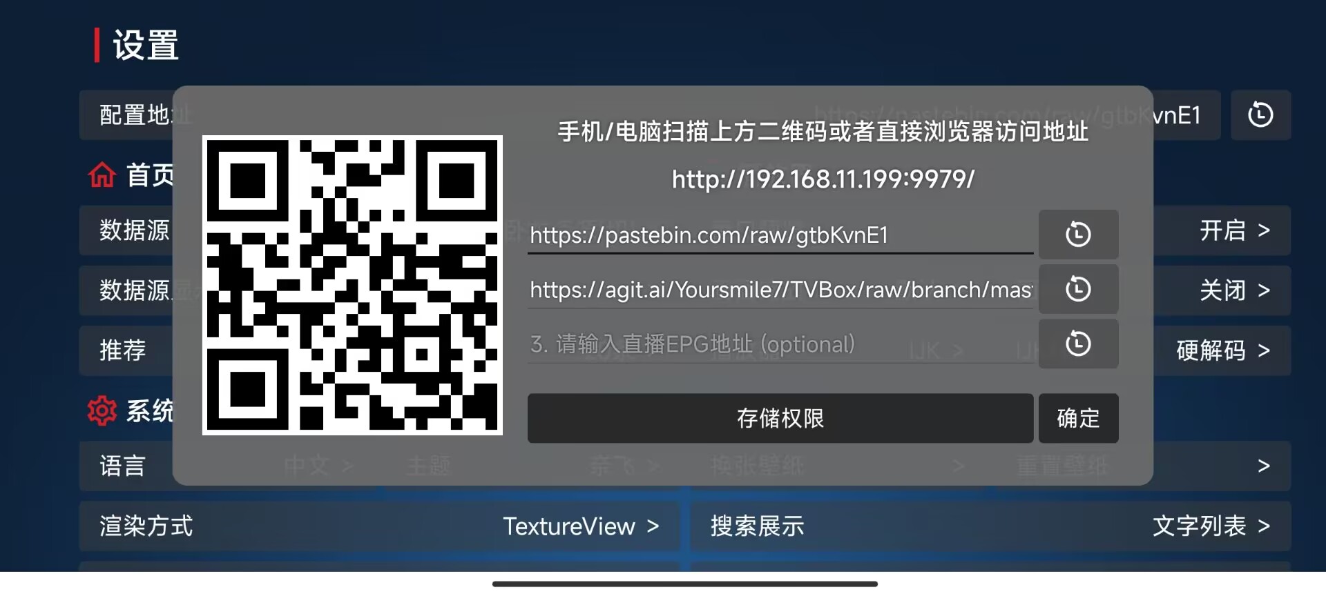 在设置里,点配置地址,把我下面提供的影视接口复制进去就可以了。