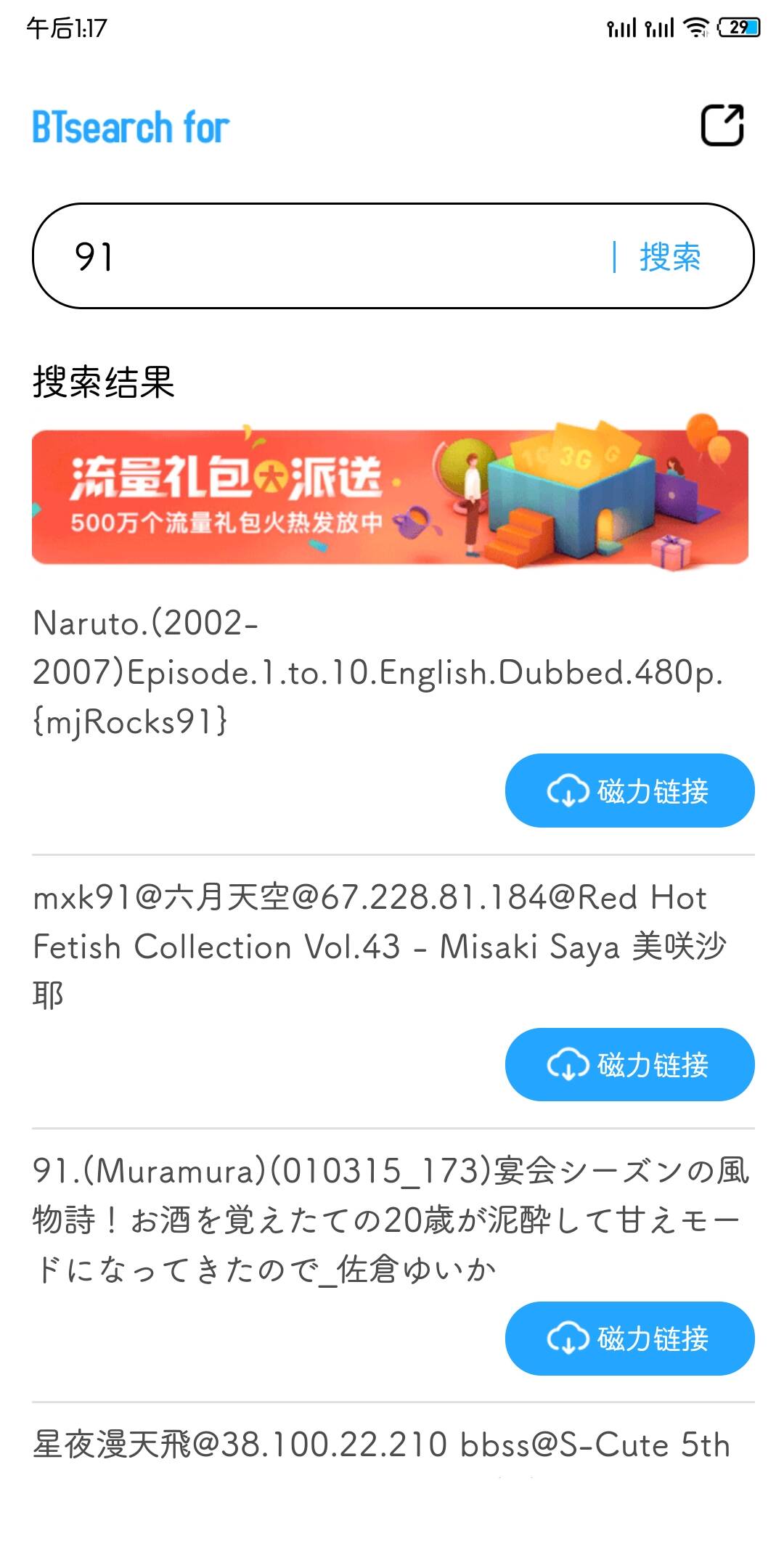 一款磁力、种子搜素神器,不限任何关键字,什么三年高考五年模拟啊,什么学习资料啊,都可以搜到。