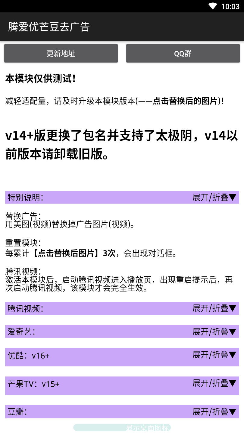 一款去广告xposed模块,支持爱奇艺、腾讯视频、豆瓣、优酷、芒果视频等视频的替换、去除。 支持太极 应用截图 Previous Next 应用信息 版本:腾爱优芒豆删广告Xposed模块v19 大小: 65K 测试系统:Android 8.0 急速下载 Get it!Download × 版权说明 翻应用是一个非营利性个人博客,并不贩卖软件,不存在任何商业目的及用途。不得将上述内容用于商业或者非法用途,本站信息来自网络,版权争议与本站无关。如有侵权请邮件与本站联系处理。 关注翻应用公众号,防迷路